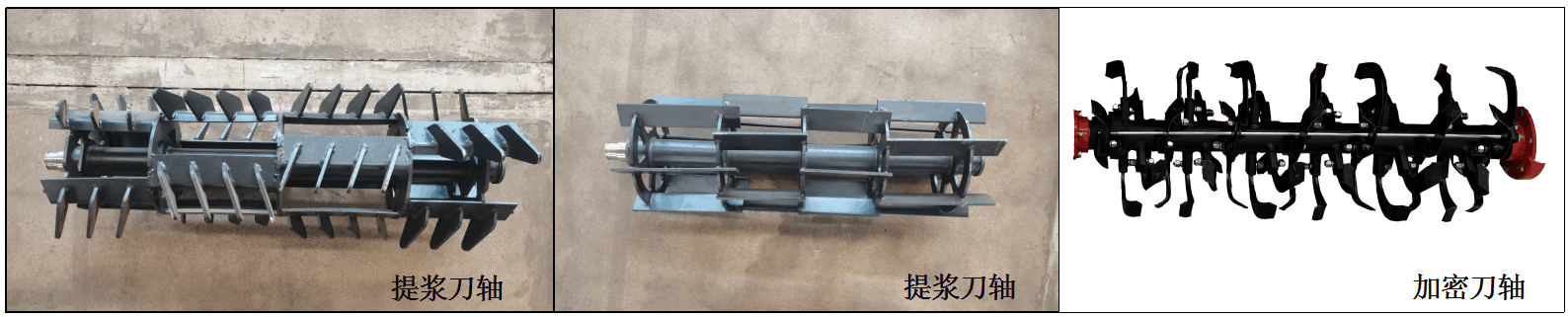 可根據(jù)水旱田及農(nóng)藝需要配制:提漿刀軸、加密刀軸