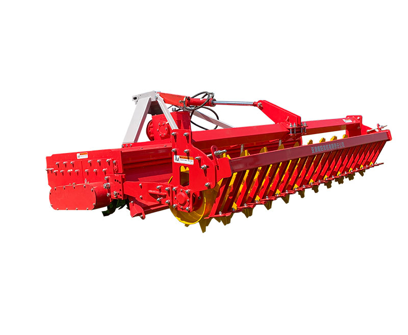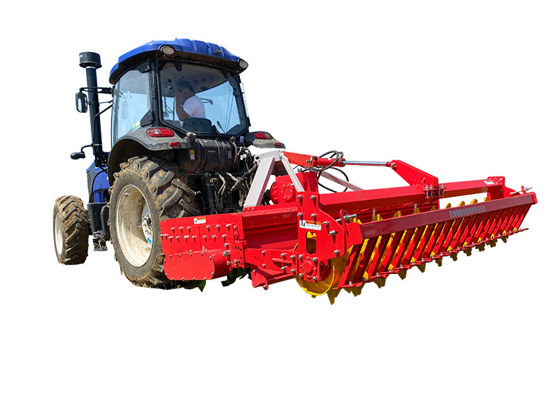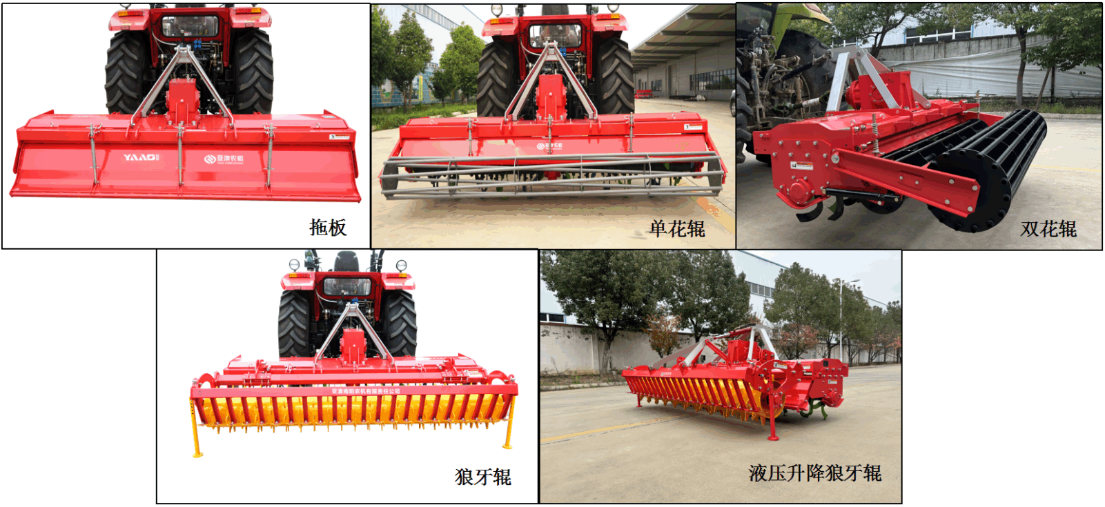 該機(jī)具主要用于旋耕整地作業(yè),農(nóng)藝順序?yàn)樾?旋耕-鎮(zhèn)壓-拖平。專利設(shè)計(jì),合理利用刀軸外端二次動力傳輸,帶動后刀軸工作,達(dá)到二次粉碎。機(jī)械傳動環(huán)節(jié)少,有效節(jié)省了拖拉機(jī)的馬力消耗。一遍頂兩遍的作業(yè)模式,大大提高工作效率。前刀軸和后刀軸連續(xù)作業(yè),拖板鎮(zhèn)壓拖平,提高作業(yè)質(zhì)量。