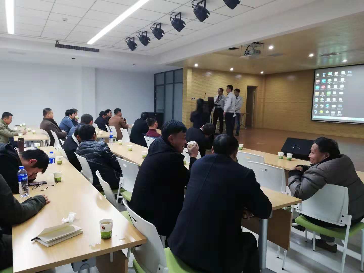 隨后一行人來到二樓多功能廳,銷售王經(jīng)理詳細(xì)給大家介紹了亞澳農(nóng)機(jī)的幾大系列產(chǎn)品:旋耕機(jī)、小麥花生精量播種施肥機(jī)、深松機(jī)及聯(lián)合耕整機(jī)。把這些機(jī)具的配套馬力、功能作用及產(chǎn)品特點(diǎn)都作了詳細(xì)的介紹。