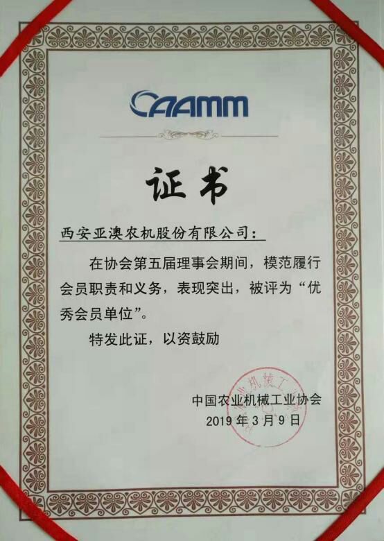 大會(huì)宣讀了中國(guó)機(jī)械工業(yè)聯(lián)合會(huì)《關(guān)于中國(guó)農(nóng)業(yè)機(jī)械工業(yè)協(xié)會(huì)理事會(huì)換屆的批復(fù)》。審議通過了陳志會(huì)長(zhǎng)代表協(xié)會(huì)第五屆理事會(huì)作的《中國(guó)農(nóng)機(jī)工業(yè)協(xié)會(huì)第五屆理事會(huì)工作報(bào)告》和侯慶忠執(zhí)行副會(huì)長(zhǎng)作的《中國(guó)農(nóng)機(jī)工業(yè)協(xié)會(huì)第五屆理事會(huì)財(cái)務(wù)收支情況報(bào)告》,審議通過了《中國(guó)農(nóng)業(yè)機(jī)械工業(yè)協(xié)會(huì)章程》,選舉產(chǎn)生了中國(guó)農(nóng)業(yè)機(jī)械工業(yè)協(xié)會(huì)第六屆理事會(huì)和第一屆監(jiān)事會(huì)。 為表彰協(xié)會(huì)五屆理事會(huì)履職以來,為推進(jìn)農(nóng)機(jī)工業(yè)技術(shù)進(jìn)步和健康發(fā)展做出積極貢獻(xiàn)的優(yōu)秀集體和個(gè)人,會(huì)議還授予侯慶忠等10人為“優(yōu)秀協(xié)會(huì)工作者”,授予企業(yè)管理委員會(huì)等5個(gè)分支機(jī)構(gòu)為“先進(jìn)分支機(jī)構(gòu)”,授予西安亞澳農(nóng)機(jī)股份有限公司等33家單位為“優(yōu)秀會(huì)員單位”。 亞澳農(nóng)機(jī)總經(jīng)理史森強(qiáng)應(yīng)邀參會(huì)并參加相關(guān)活動(dòng)。榮獲“優(yōu)秀會(huì)員單位”是協(xié)會(huì)對(duì)亞澳多年來投身農(nóng)機(jī)事業(yè)的充分肯定和高度認(rèn)可,亞澳也將以此為契機(jī),不忘初心、篤定前行,為促進(jìn)我國(guó)農(nóng)機(jī)產(chǎn)業(yè)轉(zhuǎn)型升級(jí),推動(dòng)我國(guó)農(nóng)業(yè)全程全面機(jī)械化做出新的更大貢獻(xiàn)。