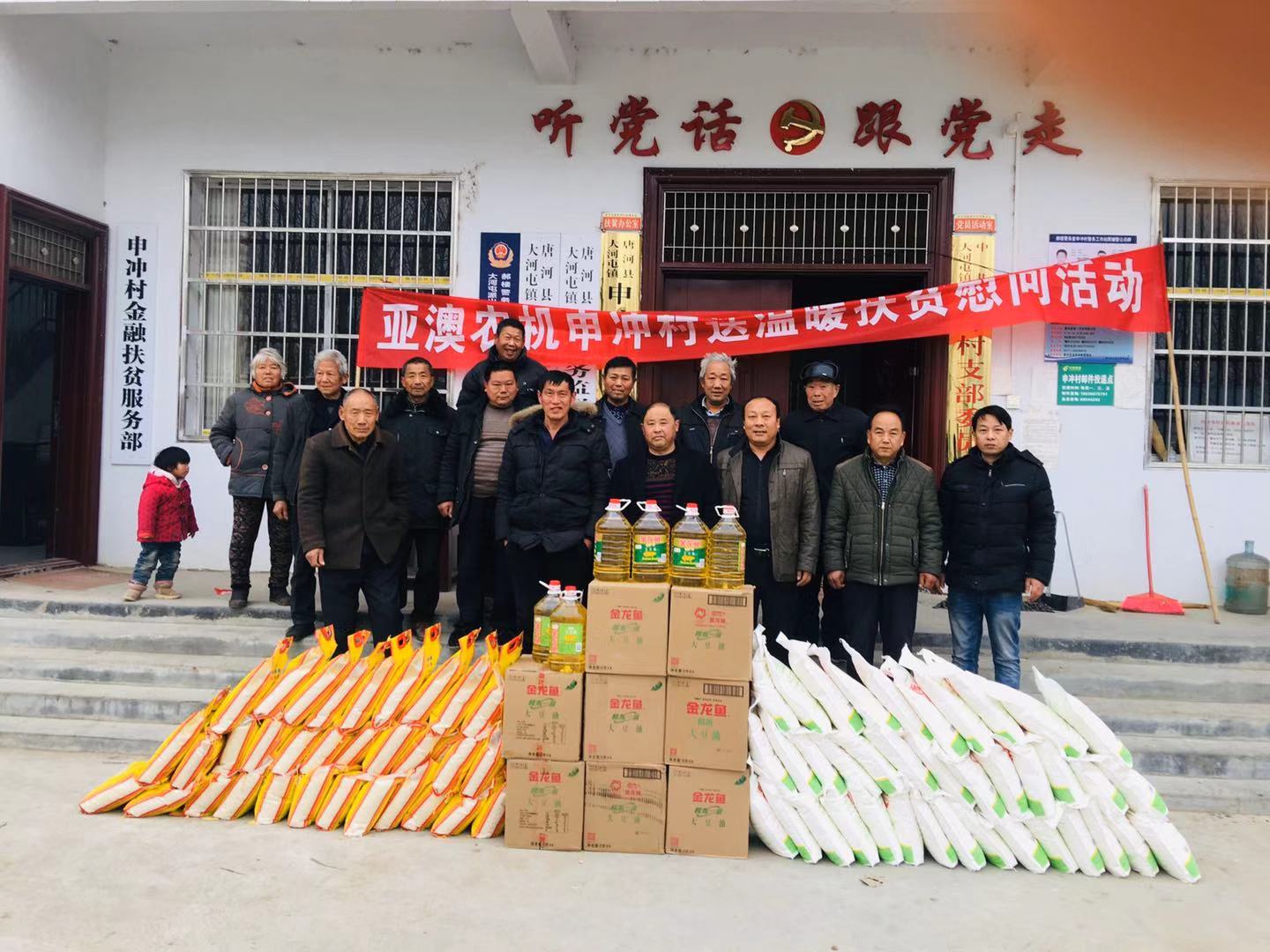 為積極貫徹落實唐河縣委縣政府”百企幫百村”的扶貧工作精神,履行企業(yè)社會責任,按照縣扶貧辦工作統(tǒng)一部署,亞澳農(nóng)機結合對口幫扶的申沖村實際情況,因地制宜,統(tǒng)籌規(guī)劃,務求實效,在2018-2019年開展了一系列的扶貧幫困工作。