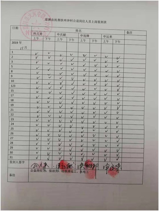 除此之外,我公司聯(lián)合村委會照顧一些特別貧困但有行動能力的老人為村部垃圾清運、水電維修、村落清潔等,并為此購買公益崗位,每月定期給這些公益崗位發(fā)放工資500元/個月,以確保他們的正常生活。這一決定從2018年5月至今已經(jīng)實行了一年半時間,累計發(fā)放公益崗位工資3.1萬元。