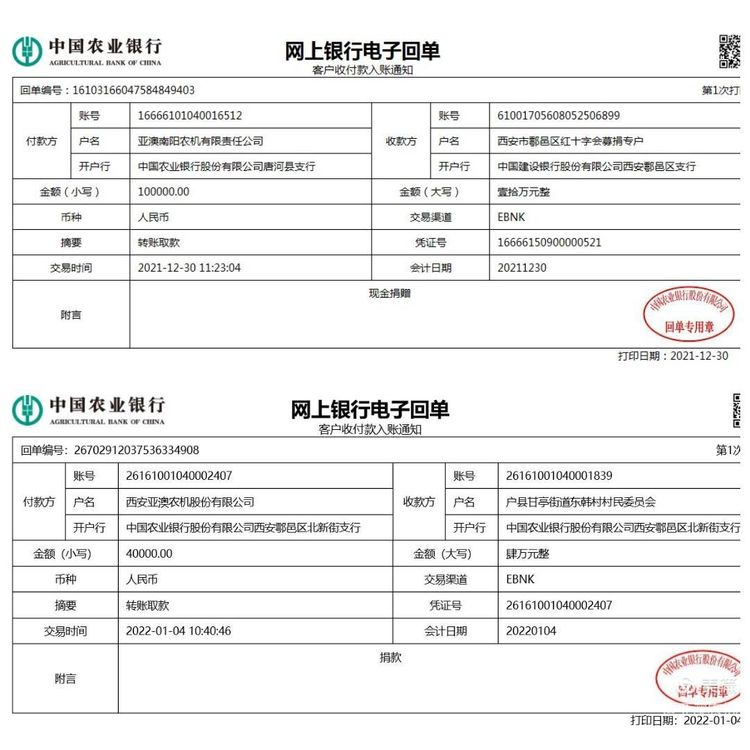 十二月份,一場突如其來的疫情打亂了西安人平靜的生活,面對日趨嚴峻的疫情態(tài)勢,亞澳農(nóng)機作為一家有社會責(zé)任感的企業(yè)積極奉獻自己力量,亞澳農(nóng)機南陽公司為鄠邑區(qū)紅十字會捐款100000元,亞澳農(nóng)機總公司為鄠邑區(qū)甘亭街道東韓村捐款40000元,亞澳農(nóng)機與社會各界人士并肩作戰(zhàn),為疫情防控工作貢獻自己的一份薄力。