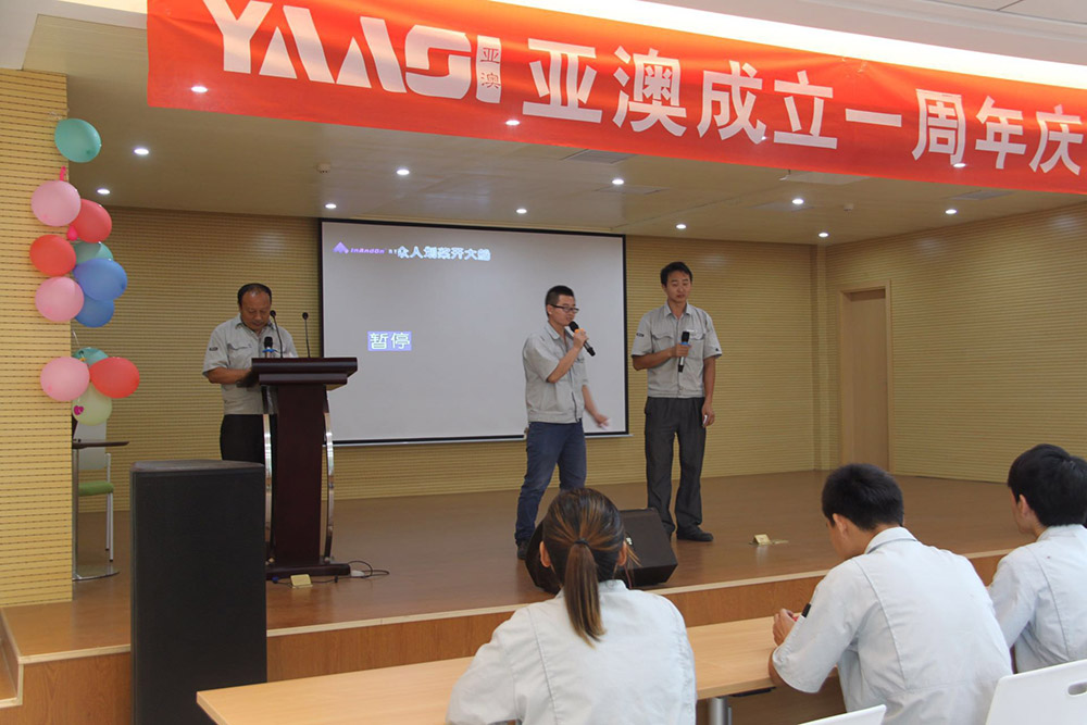 8:30在二樓進(jìn)行周年慶典,總經(jīng)理致辭,回顧亞澳一年來(lái)的發(fā)展變遷及取得的重大成績(jī)。