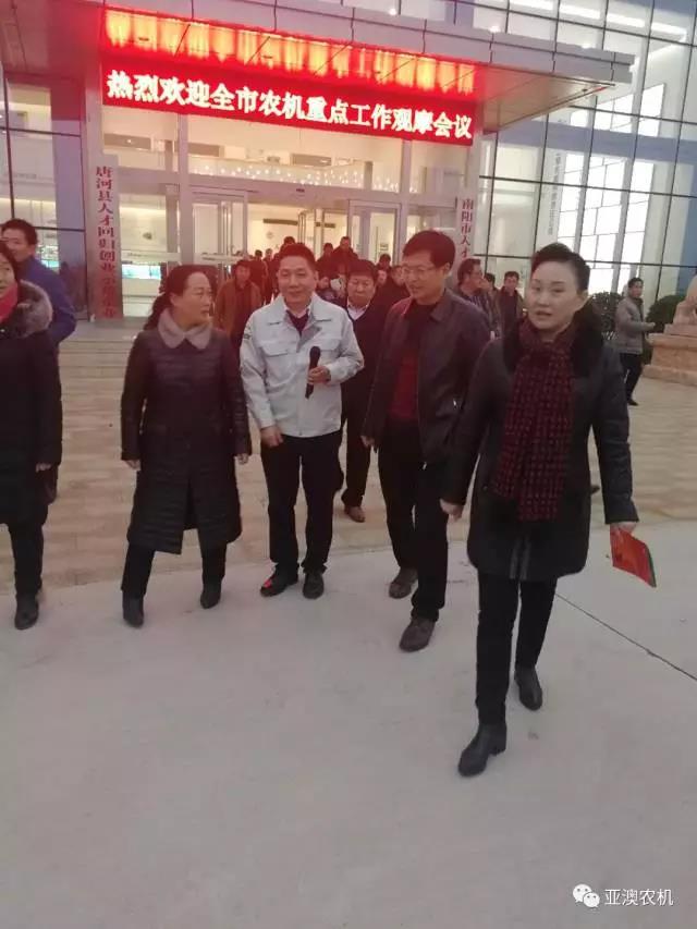 2017年12月13日,南陽市農機局劉勤局長在縣政府馬俊宏副縣長、縣農機局張凌局長陪同下帶領參加全市農機重點工作的市、各縣農機系統領導及各縣屬專業(yè)農機合作社人員,來到亞澳農機觀摩指導。